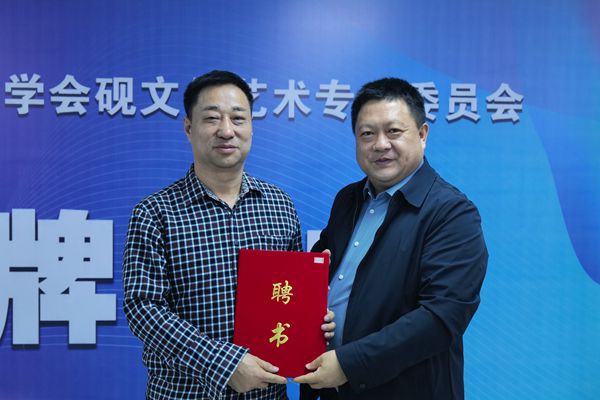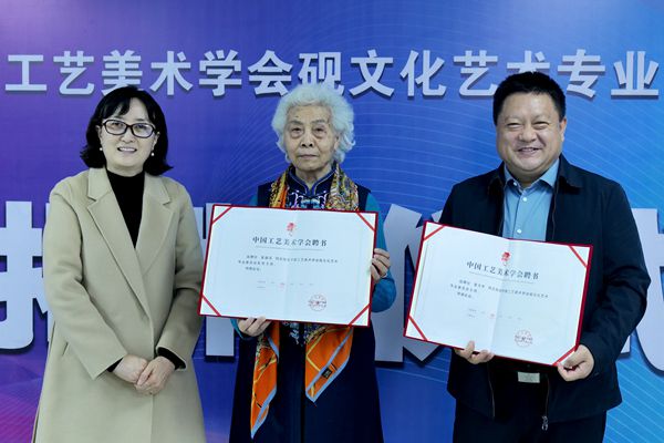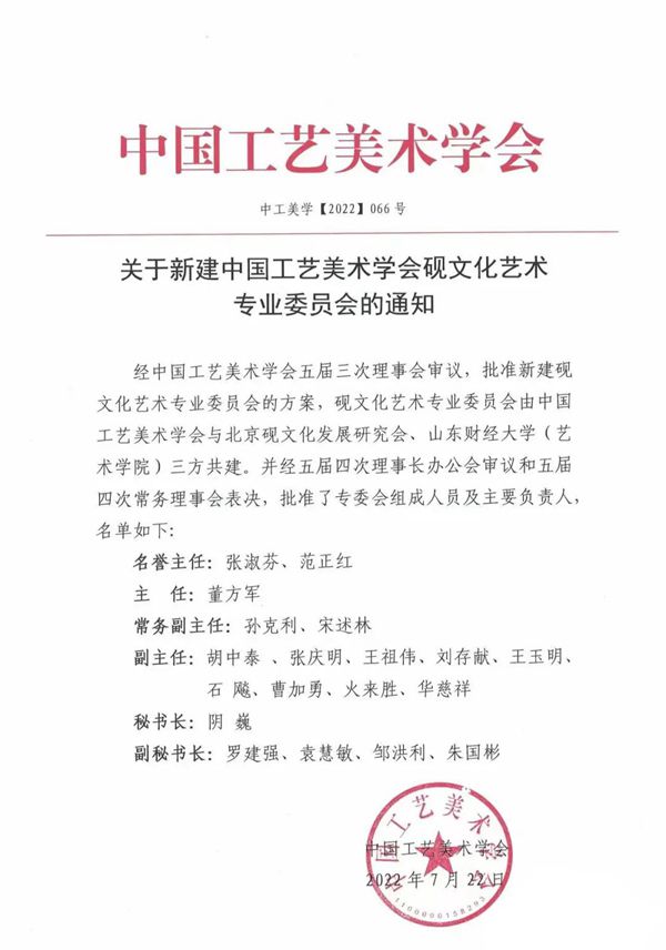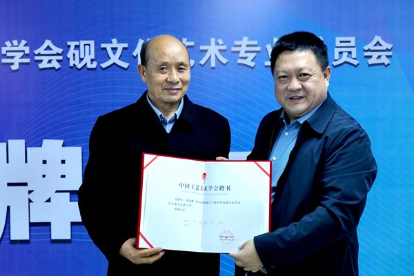 在熱烈的掌聲中,任建新副理事長宣讀中國工藝美術(shù)學(xué)會《關(guān)于新建中國工藝美術(shù)學(xué)會硯文化藝術(shù)專業(yè)委員會的通知》,并向董方軍主任、張淑芬名譽(yù)主任頒發(fā)聘書。