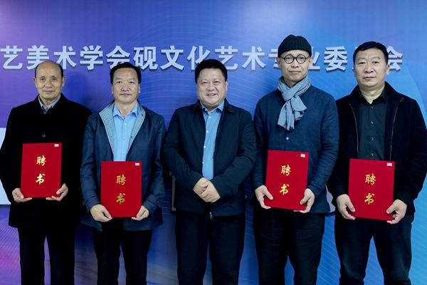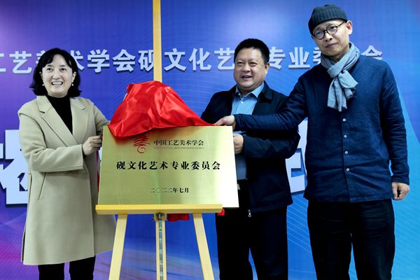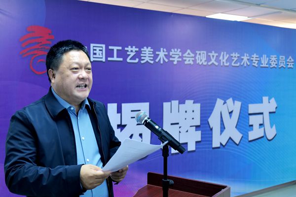 任建新副理事長、董方軍主任、宋述林院長共同為中國工藝美術(shù)學(xué)會硯文化藝術(shù)專業(yè)委員會揭牌