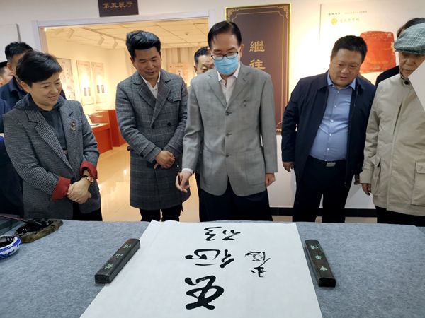 北京硯臺博物館展覽現(xiàn)場,長征硯主題創(chuàng)作展得到了與會嘉賓領導贊賞,中華炎黃文化研究會會長李玉賦欣然為長征硯題詞,給長征硯主題創(chuàng)作工程團隊全體組員以莫大的鼓舞!(攝影/于江)