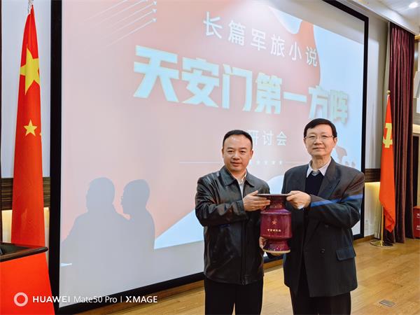老兵潘磊在《天安門第一方陣》作品研討會活動現(xiàn)場留影