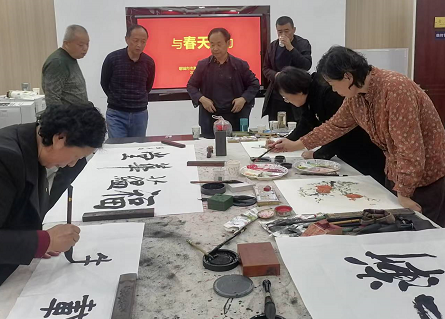 活動(dòng)現(xiàn)場(chǎng),十多名書畫家以春天為主題,共同創(chuàng)作了一幅幅美麗的畫卷。書畫家們滿懷豪情、直抒胸臆,將祝?;鲿?,洋洋灑灑著于紙上。彰顯了新時(shí)代藝術(shù)作品的鮮明時(shí)代特征。