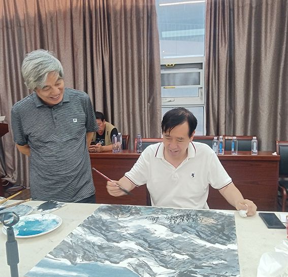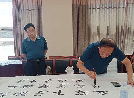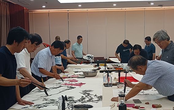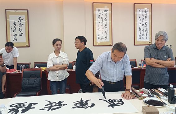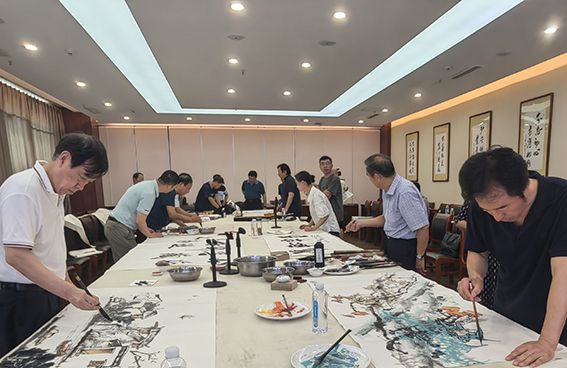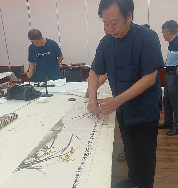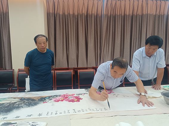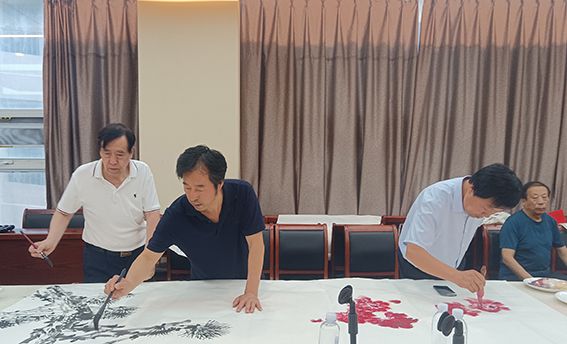 書畫家們現(xiàn)場創(chuàng)作內(nèi)容主題突出、積極健康向上,書畫作品全面體現(xiàn)了對黨的忠誠和熱愛。