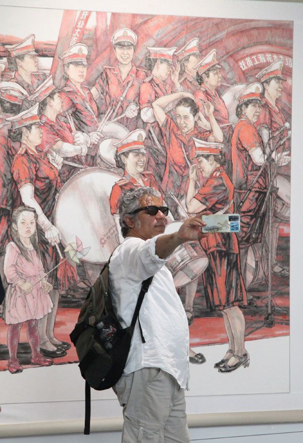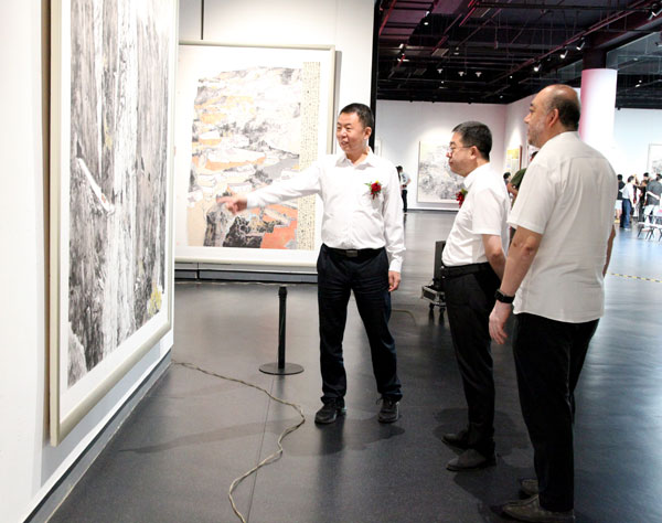 黑龍江省美術(shù)家協(xié)會副主席劉鉆說,我會帶著研究生、博士生再次來到展廳,讓他們近距離觀看河南畫家創(chuàng)作的作品。我曾帶著學(xué)生們?nèi)ヌ猩綄懮乙屗麄兛纯春幽袭嫾夜P下的太行山,同時調(diào)動學(xué)生們回憶曾經(jīng)去太行山的印象,這個經(jīng)歷與印象的結(jié)合就是國畫中所提到的意境。