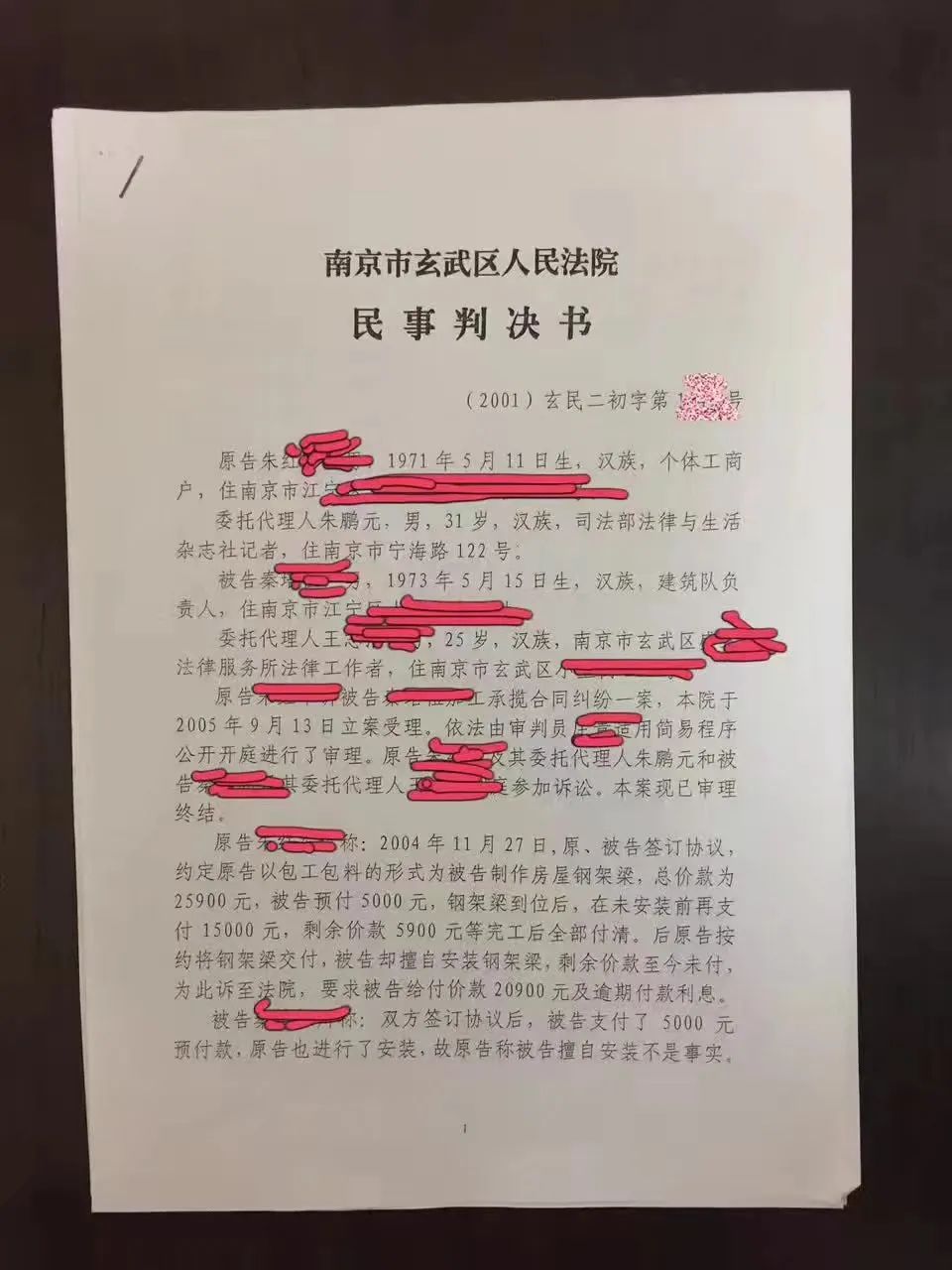 當(dāng)時(shí)在法院訴訟時(shí)候,公民代理很普遍,不像如今障礙重重。一天,南京東郊一個(gè)千年古鎮(zhèn)上,一位本家商人通過朋友找到我,稱2萬元左右的工程款被江寧區(qū)某建筑隊(duì)負(fù)責(zé)人耍賴不給,希望我能幫我維權(quán),討回自己的血汗錢。