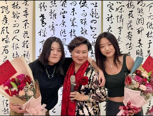 孫女王思宇和王子欣爲(wèi)她們喜愛(ài)的奶奶楊靜江院長(zhǎng)獻(xiàn)上鮮花。