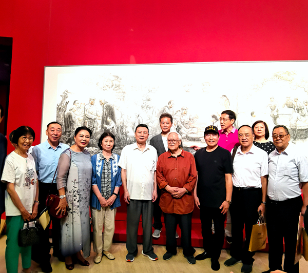 策展人王茜女士透露,“脊梁——趙志田中國畫作品展”,旨在呈現(xiàn)畫家在藝術(shù)創(chuàng)造中勇于擔(dān)當(dāng)、敢為人先的守正創(chuàng)新和對民族精神的堅守,中國美術(shù)館中心展廳展覽體現(xiàn)著中國畫家群體鏈接藝術(shù)史文脈與獨標一格的學(xué)術(shù)成果匯演。本次畫展的意義還在于大型主題創(chuàng)作中的史詩性文獻,畫家代表作《大慶工人無冬天》、《烽火太行》、《百聽不厭是鄉(xiāng)音》等在藝術(shù)史脈絡(luò)中展露的革命理想高于天的時代精神與革命樂觀主義精神依然在不斷迸發(fā)力量,為了這種精神的傳遞,畫展期間組委會特別邀請周恩來總理侄子周秉和先生,開國大將張云逸將軍之孫張曉健先生,開國上將楊至誠將軍之子楊珠江先生,開國上將李天佑將軍之子李亞濱先生及夫人饒立群女士,開國上將鄧華將軍之女鄧英女士,開國將軍邊疆之子邊小兵先生等嘉賓來到開幕式。多樣性的展覽、交流、研討、互動創(chuàng)造性地達到了一種經(jīng)典藝術(shù)走進社會大眾生活的時代洪流與能量??诒鄠鞯乃囆g(shù)經(jīng)典一定是持久的,散發(fā)著人性的溫暖和精神力量的。這也是“脊梁——趙志田中國畫作品展”帶給全國人民不尋常藝術(shù)感受的精神特質(zhì)——不忘初心、砥礪奮進。