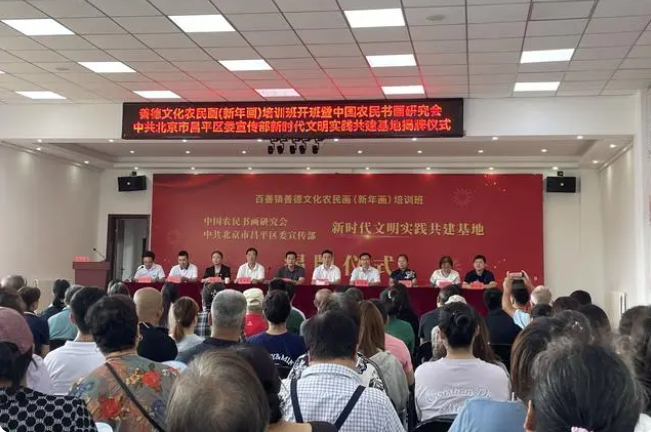 新京報(bào)訊(記者田杰雄)除了“荷鋤耘良田”,農(nóng)民也能“揮筆舞丹青”。9月1日,昌平區(qū)百善鎮(zhèn),為期7天的善德文化農(nóng)民畫培訓(xùn)班開班。新京報(bào)記者獲悉,培訓(xùn)班在全鎮(zhèn)招募50名學(xué)員,課程為公益性質(zhì),全程免費(fèi),后續(xù)還將定期開設(shè)農(nóng)民畫培訓(xùn)課程,擦亮百善鎮(zhèn)的“善德文化”品牌。當(dāng)日,中國農(nóng)民書畫研究會(huì)中共北京市昌平區(qū)委宣傳部新時(shí)代文明實(shí)踐共建基地,也在百善鎮(zhèn)下東廓村文化活動(dòng)室揭牌。