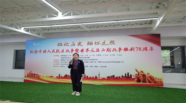祭奠結(jié)束后,全體人員移步至《佟麟閣將軍紀(jì)念館》舉行莊嚴(yán)隆重的紀(jì)念儀式,民革海淀區(qū)工委副主委宋志紅在致辭中表示重溫歷史,緬懷英烈,是為了堅(jiān)守和傳承中國人民英勇的抗戰(zhàn)精神。今年9月,鄭建邦主席在民革市委會“凝心鑄魂強(qiáng)根基、團(tuán)結(jié)奮進(jìn)新征程”主題教育宣講報(bào)告會上指出,圍繞政治堅(jiān)定、組織堅(jiān)實(shí)、履職有力、作風(fēng)優(yōu)良、制度健全,努力把民革打造成為高水平的新時(shí)代中國特色社會主義參政黨。民革海淀區(qū)工委婦女與老齡委員會副主任宋敬可獻(xiàn)上原創(chuàng)詩歌朗誦《在英雄的墓碑前》,深情的表演感染了現(xiàn)場的每一位觀眾?!顿△腴w將軍紀(jì)念館》為海淀區(qū)愛國主義教育基地,副館長苑建國向大家介紹了紀(jì)念館建設(shè)的歷史沿革和動人故事。佟麟閣將軍嫡孫佟曉冬充滿激情地講述了祖父的戰(zhàn)斗事跡,擔(dān)當(dāng)精神,佟曉冬表示抗戰(zhàn)中涌現(xiàn)出無數(shù)與祖父一樣為國捐軀的英雄和無名英雄,作為后代必將賡續(xù)先輩的精神。