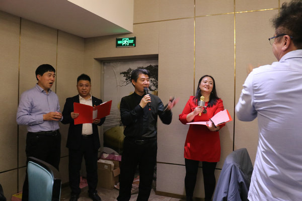 贊助商陜西根之源實(shí)業(yè)集團(tuán)名譽(yù)董事長(zhǎng)王生學(xué)講話,他對(duì)總結(jié)表彰會(huì)的成功舉行表示祝賀,希望雙方加強(qiáng)合作交流,實(shí)現(xiàn)共贏發(fā)展。晚會(huì)上,大家各顯神通,表演了一個(gè)又一個(gè)精彩的節(jié)目。安康站站長(zhǎng)張濤演唱了陜北民歌《淚蛋蛋掉在酒杯杯里》《夢(mèng)中的蘭花花》,咸陽(yáng)站站長(zhǎng)宋賓揚(yáng)朗誦了李白的詩(shī)歌《將進(jìn)酒》,安康站副主任陳睿為大家演唱了《哥已不是當(dāng)年的哥》,渭南站站長(zhǎng)樊江偉演唱了《戰(zhàn)馬舞蹈》,星光大道農(nóng)民歌手李衛(wèi)國(guó)為大家獻(xiàn)唱了《和平祖國(guó)》《追逐夢(mèng)想》歌曲……