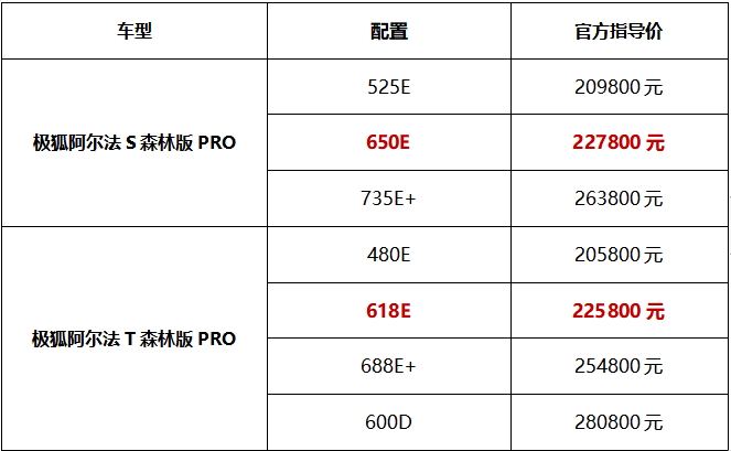 同時,此次極狐汽車新增阿爾法S森林版PRO 650E和阿爾法T森林版PRO 618E兩款續(xù)航版本車型,官方指導價分別為22.78萬元和22.58萬元。煥新而來的阿爾法S/T森林版PRO,將憑借健康座艙、極致安全、舒適豪華、續(xù)航品質四大硬核實力,為用戶帶來更安全、更舒適、更豪華、更具價值感超值純電出行體驗。
