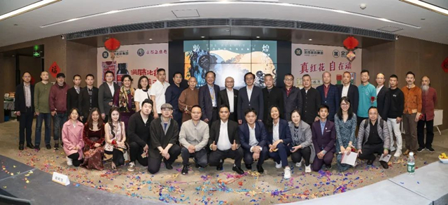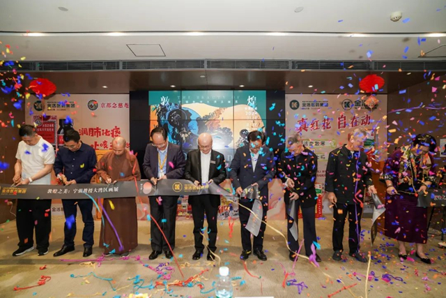 嘉賓為展覽進(jìn)行開幕剪彩 16日下午,由舒心堂· 生空間主理人、金活醫(yī)藥集團(tuán)董事長助理趙蔚瑛女士對本次展覽進(jìn)行開幕主持,肖浪老師作為本次展覽的學(xué)術(shù)支持。其中由北京外國語大學(xué)藝術(shù)研究院院長、碩士、博士研究生導(dǎo)師、教育部特聘長江學(xué)者、北京靳尚誼藝術(shù)基金會學(xué)術(shù)顧問、深圳文交所藝術(shù)總顧問、敦煌學(xué)專家、著名畫家寧強(qiáng)先生,深圳市委原常委、宣傳部部長李小甘先生,深圳市美術(shù)家協(xié)會主席、關(guān)山月美術(shù)館館長陳湘波先生,廣州市佛教協(xié)會副會長、雁塔寺方丈法成方丈,深圳市政協(xié)常委、梵思諾時尚集團(tuán)董事長、潮青會主席陳國雄先生,龍游深圳商會會長林信軍先生,洛陽商業(yè)職業(yè)學(xué)院理事長晉爵先生,金活醫(yī)藥集團(tuán)董事局主席趙利生先生,舒心堂堂主、金活醫(yī)藥執(zhí)行董事陳樂燊女士,為展覽進(jìn)行開幕剪彩,他們和現(xiàn)場嘉賓共同見證了本次展覽的開幕。