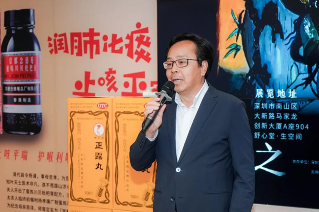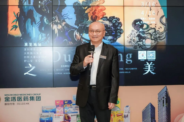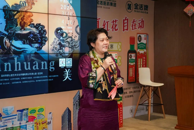 舒心堂堂主、金活醫(yī)藥執(zhí)行董事陳樂燊女士致辭中提到:舒心堂·生空間攜手寧強(qiáng)教授舉辦了教授的大灣區(qū)首次展覽,寧強(qiáng)教授作為國家教育部“長江學(xué)者”,他發(fā)表的關(guān)于敦煌藝術(shù)的論文將會讓人們對敦煌石窟中的藝術(shù)有更深刻的理解。敦煌石窟藝術(shù)作為中華傳統(tǒng)文化的瑰寶,我們舉辦這樣的一個展覽不僅是為了表達(dá)與展示,更是寧強(qiáng)教授對敦煌藝術(shù)文化的研究與弘揚(yáng)。本次展覽展出寧強(qiáng)教授近年來的精心創(chuàng)作,與傳統(tǒng)敦煌壁畫相比,用色更加大膽,有著豐富的色彩表現(xiàn)力,不僅凸現(xiàn)了敦煌壁畫原有的時代特征,更展現(xiàn)出其特色的藝術(shù)風(fēng)格,它的線條簡練而輪廓分明,讓人耳目一新,原來石窟壁畫可以用這樣的表達(dá)方式。寧強(qiáng)教授以個人的獨(dú)特視野將百年的歷史作品帶入了現(xiàn)代,讓我們一同融入了敦煌石窟的歷史之中,期待各位現(xiàn)場的朋友能夠親身感受到這份傳承百年的文化底蘊(yùn)。最后讓我們一起祝愿敦煌之美:寧強(qiáng)教授大灣區(qū)畫展開幕順利,并祝各位來賓有著賞心悅目的午后。