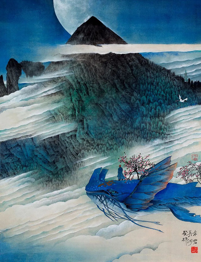 未君《莊子·與鯤同游》——66.5cm×50cm 絹本設(shè)色 2023