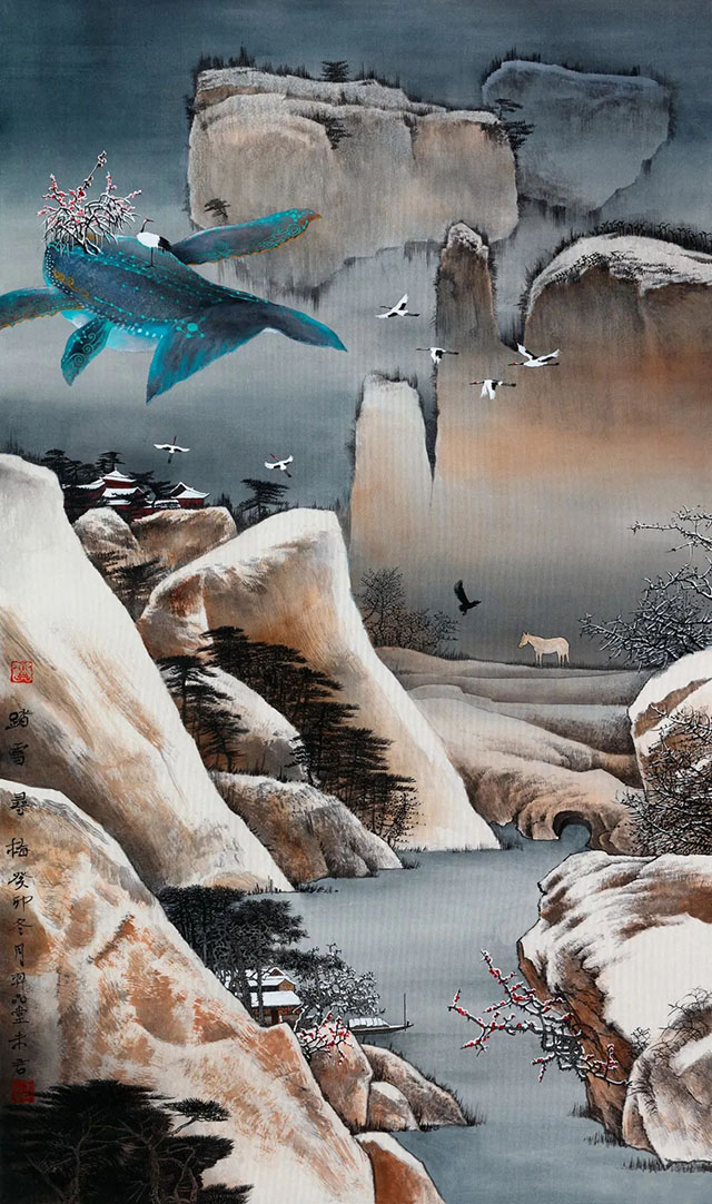 未君《踏雪尋梅》——82.5cm×54cm 絹本設(shè)色 2024