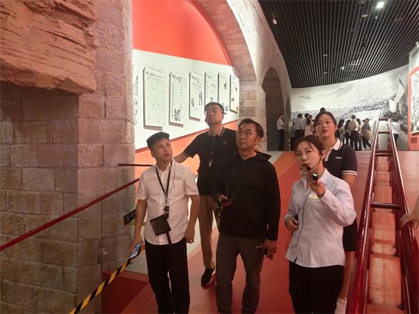 書畫家黃強(qiáng)、書法家李林林、書畫家、先鋒派作家王新在張麗等陪同下走進(jìn)紅旗渠紀(jì)念館
