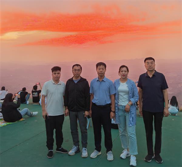 企業(yè)家楊艷國、張麗陪同書畫家黃強(qiáng)、書法家李林林、書畫家、先鋒派作家王新觀看日出中留影