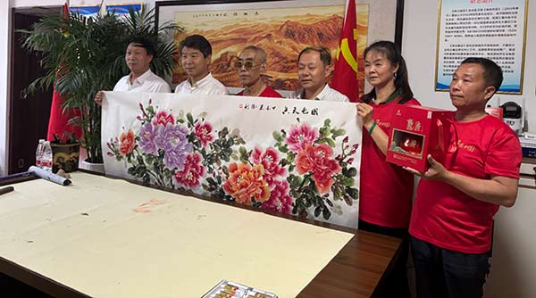 交流環(huán)節(jié),尋美中國(guó)運(yùn)營(yíng)部長(zhǎng)、西北建設(shè)雜志社運(yùn)營(yíng)中心主任焦點(diǎn)親自為趙廳長(zhǎng)和楊處長(zhǎng)佩戴了尋美中國(guó)的徽章,西北建設(shè)雜志社西安工作站副站長(zhǎng)、社會(huì)公益活動(dòng)家吳衛(wèi)東老師也為在場(chǎng)的各位領(lǐng)導(dǎo)贈(zèng)送了尋美中國(guó)具有紀(jì)念意義的書(shū)畫(huà)作品。大家對(duì)尋美中國(guó)別具一格的書(shū)畫(huà)袋設(shè)計(jì)方案給與了充分肯定,認(rèn)為書(shū)畫(huà)袋設(shè)計(jì)新穎,思想明確,主題鮮明,參加活動(dòng)的領(lǐng)導(dǎo)嘉賓對(duì)本次紅色文化主題活動(dòng)提出了一些寶貴的意見(jiàn)建議,表示大力支持本次活動(dòng)!