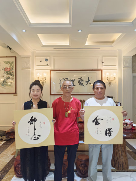抵達(dá)西寧后,牡丹仙子張利老師現(xiàn)場(chǎng)潑墨,一幅盛開在筆墨之間的國(guó)畫牡丹映入眼簾,氣韻生動(dòng)‌色彩斑斕,‌將自然之美凝固在紙上,成為永恒的詩(shī)篇。國(guó)家一級(jí)書法家姜志明老師現(xiàn)場(chǎng)題詞“聽習(xí)主席話,跟共產(chǎn)黨走”將尋美中國(guó)的核心理念表現(xiàn)的淋漓盡致。國(guó)家一級(jí)美術(shù)師、中書協(xié)會(huì)員張根明老師也奉上了“知行合一”等作品。恰逢八一,軍旅書畫家工作委員會(huì)副主任沈兆新帶領(lǐng)書畫家李發(fā)倉(cāng)、張根明、張思張、張小偉、陳長(zhǎng)生、石愛民、王月幫、馬克錦、高海萍、吳萬(wàn)里、以及太陽(yáng)導(dǎo)演等人,在愉快歡樂的氛圍中共同迎接八一建軍節(jié)的到來。在場(chǎng)的各級(jí)領(lǐng)導(dǎo)對(duì)本次紅色文化主題活動(dòng)提出了一些寶貴的意見建議,全方位支持本次活動(dòng)!