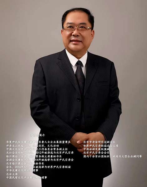 十年前健在的族史研究者經(jīng)過方方面面的慎重考察研究,逐將尹氏族史研究和聯(lián)誼工作的擔(dān)子壓到了我的肩上,從此便走在了為全體尹氏家族服務(wù)的路上,擔(dān)負(fù)起五百萬尹氏家人的重托。我敬畏先人不敢懈怠、無私奉獻(xiàn)忘我付出、嘔心瀝血積極工作,為的就是要傳承優(yōu)秀先德文化,凝聚共識(shí)弘揚(yáng)廣大尹氏文化,促進(jìn)天下尹氏繁榮富強(qiáng)。在老前輩們的大力關(guān)懷期盼下,我與熱心族人們?cè)谌珖?guó)乃至海外尹氏聚集地開展了多年的調(diào)研探討,共同籌劃帶領(lǐng)天下尹氏適應(yīng)時(shí)代發(fā)展潮流,改革創(chuàng)新奮發(fā)有為,譜寫天下尹氏發(fā)展新篇章的路子。為順應(yīng)全國(guó)尹氏族人及海外尹氏族人切盼團(tuán)結(jié)凝聚圖強(qiáng)圖盛的強(qiáng)烈呼聲,擬制了《章程》,建立了海內(nèi)外宗親聯(lián)誼組織領(lǐng)導(dǎo)集體,完善了管理制度,創(chuàng)辦了《尹氏宗親網(wǎng)》、《華夏尹氏》雜志等現(xiàn)代融通媒體,成立了尹氏企業(yè)集團(tuán)下屬五大全國(guó)性公司,注冊(cè)了近百個(gè)相關(guān)商標(biāo)和知識(shí)產(chǎn)權(quán),聯(lián)合開發(fā)生產(chǎn)了“尹氏酒”、“尹氏皮具”、“尹氏手表”等幾十個(gè)文創(chuàng)產(chǎn)品,建立健全了省市縣宗親聯(lián)誼組織及國(guó)外聯(lián)誼組織,組織開展了全國(guó)性的族譜編纂培訓(xùn)和家族傳統(tǒng)歷史文化研究開發(fā)利用工作,組織了幾百場(chǎng)大型文化經(jīng)濟(jì)論壇、追思祭祖、游覽觀光、參觀學(xué)習(xí)、資源對(duì)接、扶貧助學(xué)和全國(guó)聯(lián)誼等多形式活動(dòng),積極將我們的工作融入到適應(yīng)國(guó)家發(fā)展形勢(shì)的快車道中,使我們的尹氏族人更加團(tuán)結(jié)凝聚和志向共識(shí),尹氏文化又成為了新時(shí)代全國(guó)姓氏文化的一面標(biāo)旗。”