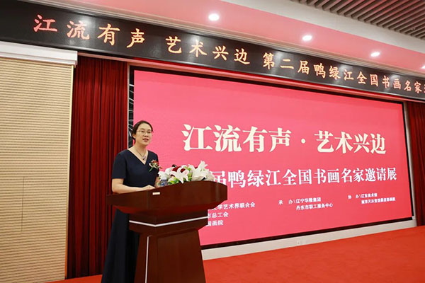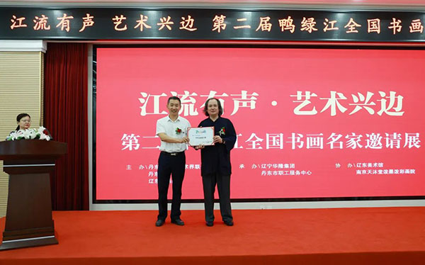 8月10日,由丹東市文聯(lián)、丹東市總工會、遼東國畫院聯(lián)合主辦,遼寧華隆集團(tuán)承辦的“江流有聲 藝術(shù)興邊”第二屆鴨綠江全國書畫名家邀請展在丹東市勞動宮開幕。