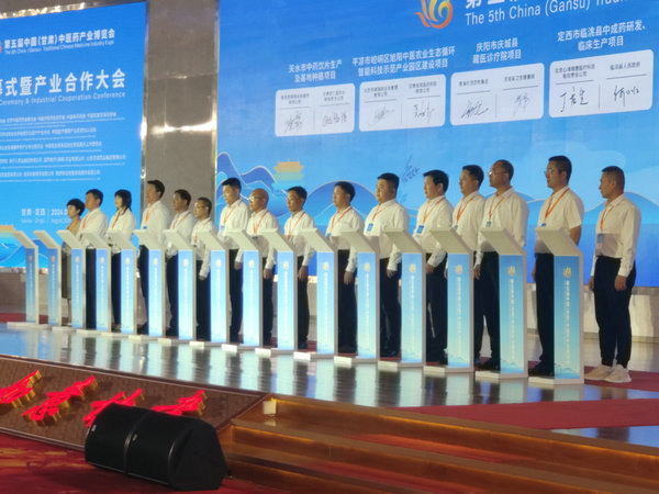 定西市人民政府副市長張強(qiáng)、中國醫(yī)藥物資協(xié)會道地藥材分會會長張聰、利君集團(tuán)有限責(zé)任公司總經(jīng)理張亞濱、甘肅藥業(yè)投資集團(tuán)有限公司黨委委員、副總經(jīng)理李儼鈞進(jìn)行了合作簽約;同時(shí),還進(jìn)行了項(xiàng)目合作簽約?,F(xiàn)場共簽約中醫(yī)藥產(chǎn)業(yè)項(xiàng)目117個(gè),簽約金額203.4億元。
