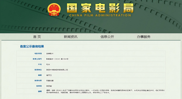 陜西重大水利改革題材電影《吃水》獲國家電影局批復(fù)并公示