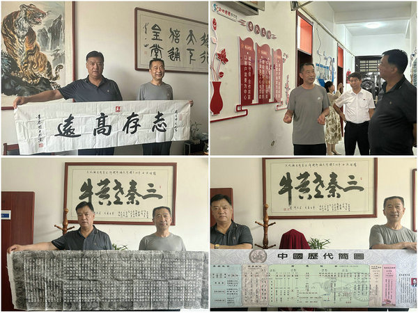 活動(dòng)期間,沈兆新為許衙評(píng)贈(zèng)送了國(guó)防大學(xué)客座教授、中國(guó)書(shū)畫(huà)家聯(lián)誼會(huì)副主席、世界華僑華人社團(tuán)聯(lián)合總會(huì)愛(ài)國(guó)宣傳委員會(huì)主任李春明將軍書(shū)寫(xiě)的作品《志存高遠(yuǎn)》,許衙評(píng)為沈兆新回贈(zèng)了已92歲的岳父、民間歷史學(xué)家、書(shū)法家吳志琪書(shū)寫(xiě)并編撰的韻文詩(shī)《中國(guó)朝代繁衍》和繪制的《中國(guó)歷代簡(jiǎn)圖》。