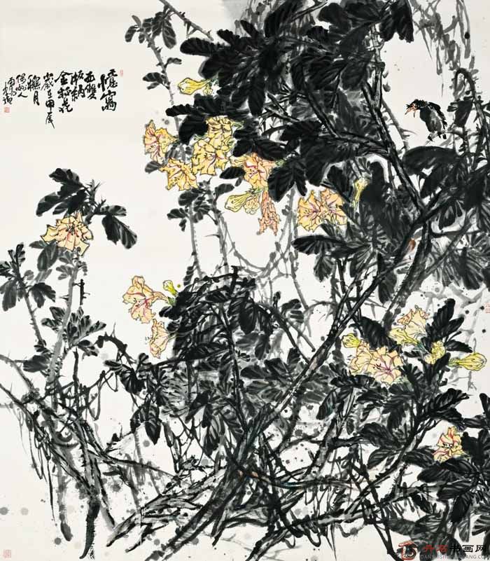 劉宏亮對(duì)傳統(tǒng)寫(xiě)意花鳥(niǎo)畫(huà)技法的深入研究與創(chuàng)新運(yùn)用,為這一古老的藝術(shù)形式注入了新的活力。他既尊重傳統(tǒng),又敢于突破傳統(tǒng)的束縛,以獨(dú)特的視角和表現(xiàn)手法展現(xiàn)出花鳥(niǎo)世界的萬(wàn)千姿態(tài)。他的作品中,色彩的運(yùn)用大膽而細(xì)膩,既有著強(qiáng)烈的視覺(jué)沖擊力,又不失和諧與美感。筆觸的變化豐富多樣,或剛勁有力,或輕柔婉轉(zhuǎn),生動(dòng)地刻畫(huà)出花鳥(niǎo)的形態(tài)與神韻。