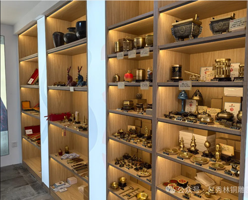 2024年10月1日,趙家銅藝作坊蘭亭店開業(yè)。該店位于書法圣地蘭亭景區(qū)內(nèi),以銅雕書法文房用品、茶器和銅文創(chuàng)展售為主。此外,店內(nèi)上墻展示作品均為近年來趙秀林老師獲得國家級獎項作品。