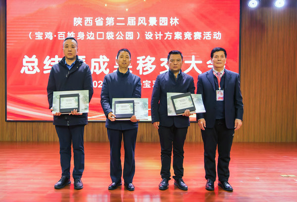 陜西省風(fēng)景園林協(xié)會副會長徐衛(wèi)波、周新穎,監(jiān)事長韓朝暉,副秘書長葉青,顧問李鋒波,常務(wù)理事張莉潔等主持并參與了頒獎(jiǎng)活動。 一等獎(jiǎng)獲得者,西安建筑科技大學(xué)學(xué)生牛籽木、陜西豐字設(shè)計(jì)工程有限公司主創(chuàng)設(shè)計(jì)師張家豪、中國建筑西北設(shè)計(jì)研究院有限公司規(guī)劃景觀與建筑裝飾工程設(shè)計(jì)研究院景觀所一部部長高雅清分別發(fā)表了獲獎(jiǎng)感言。本屆競賽評審專家組副組長劉暉教授、何紅蕓院長分別對獲獎(jiǎng)作品設(shè)計(jì)方案進(jìn)行了點(diǎn)評。 最后,本屆競賽組委會主任、陜西省風(fēng)景園林協(xié)會會長張繼剛同志向?qū)氹u市城管局、渭濱區(qū)、陳倉區(qū)園林綠化主管部門移交了設(shè)計(jì)方案成果,這些方案成果將應(yīng)用于寶雞市相關(guān)口袋公園項(xiàng)目落地實(shí)施。 會議認(rèn)為,本屆競賽活動是落實(shí)省住房城鄉(xiāng)建設(shè)廳關(guān)于口袋公園建設(shè)工作要求的具體行動,不但強(qiáng)化了“以人民為中心、人民城市為人民”的政治定位與工作目標(biāo)導(dǎo)向,推動了“產(chǎn)、學(xué)、研”融合發(fā)展,而且為寶雞市“‘小口袋’裝滿‘大幸福’”主題活動,凝聚了高等學(xué)府與工程勘察、規(guī)劃設(shè)計(jì)、施工科研團(tuán)隊(duì)的力量,真真切切地奉獻(xiàn)了智慧、付出了勞動、呈上了方案。