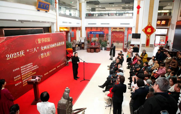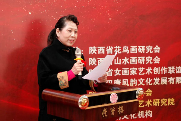 《繁華似錦》2025慶“三八”女畫(huà)家國(guó)畫(huà)作品提名展(第九屆)在西安亮寶樓開(kāi)幕 2025/03/05 次瀏覽 2025年3月1日上午,由陜西省花鳥(niǎo)畫(huà)研究會(huì)、陜西省山水畫(huà)研究會(huì)、陜西省美術(shù)家協(xié)會(huì)創(chuàng)作中心女畫(huà)家藝術(shù)創(chuàng)作聯(lián)誼會(huì)主辦,陜西漢唐風(fēng)韻文化發(fā)展有限公司協(xié)辦的《繁華似錦》2025慶“三八”女畫(huà)家國(guó)畫(huà)作品提名展(第九屆)在亮寶樓開(kāi)幕。 出席本次開(kāi)幕式的領(lǐng)導(dǎo)和嘉賓有:西安美術(shù)學(xué)院院長(zhǎng)、陜西省美術(shù)家協(xié)會(huì)主席朱盡暉,陜西省美術(shù)家協(xié)會(huì)副主席、渭南市美術(shù)家協(xié)會(huì)主席黨寬陽(yáng),陜西省花鳥(niǎo)畫(huà)研究會(huì)原會(huì)長(zhǎng)樊昌哲,西安美術(shù)學(xué)院教授、黃土畫(huà)派副會(huì)長(zhǎng)劉丹,西安美術(shù)學(xué)院教授、陜西當(dāng)代國(guó)畫(huà)藝術(shù)研究院副院長(zhǎng)焦永峰,陜西當(dāng)代國(guó)畫(huà)藝術(shù)研究院院長(zhǎng)王建樹(shù),西安中國(guó)畫(huà)院展覽部主任倪超,陜西省婦女書(shū)畫(huà)協(xié)會(huì)主席廖偉芳,陜西師范學(xué)院美術(shù)學(xué)院教授徐鴻延,西安市群藝館創(chuàng)研部主任、陜西當(dāng)代國(guó)畫(huà)藝術(shù)研究院副院長(zhǎng)劉景安、副院長(zhǎng)吳成斌、張宏博、副秘書(shū)長(zhǎng)田曉,西安美術(shù)學(xué)院圖書(shū)館信息部主任、副教授賀勇,陜西省花鳥(niǎo)畫(huà)研究會(huì)副會(huì)長(zhǎng)、周至美術(shù)家協(xié)會(huì)主席劉龍剛,西安市蓮湖區(qū)美術(shù)家協(xié)會(huì)主席王振東,西安市鄠邑區(qū)美術(shù)家協(xié)會(huì)主席雒亞森,陜西當(dāng)代國(guó)畫(huà)藝術(shù)研究院副秘書(shū)長(zhǎng)馬小龍,陜西當(dāng)代國(guó)畫(huà)藝術(shù)研究院辦公室主任閻仁義,陜西漢唐風(fēng)韻文化發(fā)展有限公司莊愛(ài)俠,金獅華納藝術(shù)機(jī)構(gòu)董事長(zhǎng)涂峰等。 陜西省美術(shù)家協(xié)會(huì)創(chuàng)作中心女畫(huà)家藝術(shù)創(chuàng)作聯(lián)誼會(huì)會(huì)長(zhǎng)秦生卉致歡迎辭時(shí)表示,三月是希望田野上綻放的花朵,愿在這美麗的日子里迎來(lái)繁花盛開(kāi)。多年來(lái),聯(lián)誼會(huì)始終堅(jiān)持黨的藝術(shù)路線方針政策,堅(jiān)持在省美協(xié)的關(guān)心支持下,緊緊依靠組織,自覺(jué)開(kāi)展文化藝術(shù)交流活動(dòng),團(tuán)結(jié)和諧,不為名利,克服困難,積極堅(jiān)持美術(shù)創(chuàng)作,提高藝術(shù)水平。女畫(huà)家們熱情奔放,堅(jiān)持以獨(dú)特的視角和細(xì)膩的筆觸,用畫(huà)筆描繪時(shí)代風(fēng)采,用藝術(shù)詮釋生命意義,多少艱辛,多少委屈,多少付出,沒(méi)有動(dòng)搖她們?yōu)樗囆g(shù)執(zhí)著努力奮斗的目標(biāo),為陜西省美術(shù)事業(yè)的發(fā)展做出了積極貢獻(xiàn)。 西安美術(shù)學(xué)院院長(zhǎng)、陜西省美術(shù)家協(xié)會(huì)主席朱盡暉致辭 陜西省美術(shù)家協(xié)會(huì)副主席、渭南市美術(shù)家協(xié)會(huì)主席黨寬陽(yáng)致辭 西安美術(shù)學(xué)院教授、黃土畫(huà)派副會(huì)長(zhǎng)劉丹致辭 陜西漢唐風(fēng)韻文化發(fā)展有限公司董事長(zhǎng)莊愛(ài)俠致辭 陜西省花鳥(niǎo)研究會(huì)原會(huì)長(zhǎng)樊昌哲出席并宣布展覽開(kāi)幕。 開(kāi)幕式由女畫(huà)家藝術(shù)創(chuàng)作聯(lián)誼會(huì)副會(huì)長(zhǎng)兼秘書(shū)長(zhǎng)張琳萍主持。 女畫(huà)家藝術(shù)創(chuàng)作聯(lián)誼會(huì)副秘書(shū)長(zhǎng)冶柏霆介紹參加活動(dòng)的領(lǐng)導(dǎo)和嘉賓。 據(jù)悉,本次展覽共展出國(guó)畫(huà)作品156幅,展至2025年3月5日。