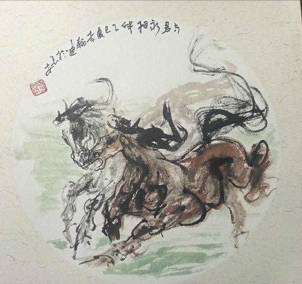 4.綜合分析:特別是這幅群馬題材的中國畫。從技法看,畫家以豪放灑脫的筆墨勾勒馬的形態(tài),運(yùn)用濃淡相宜的墨色和富有變化的線條,生動(dòng)展現(xiàn)出馬的肌肉、骨骼和飄逸的鬃毛,體現(xiàn)了中國傳統(tǒng)水墨畫注重神韻和寫意的特點(diǎn)。從構(gòu)圖而言,群馬呈奔跑之勢(shì)分布畫面,營造出一種動(dòng)態(tài)的節(jié)奏感,仿佛能讓人感受到馬蹄奔騰的力量和呼嘯的風(fēng)聲,布局疏密得當(dāng),既展現(xiàn)出馬群的氣勢(shì),又有個(gè)體姿態(tài)的細(xì)節(jié)呈現(xiàn)。從意境來講,群馬奔騰的畫面?zhèn)鬟f出積極向上、勇往直前的精神力量,給觀者帶來強(qiáng)烈的視覺沖擊和精神鼓舞,契合人們對(duì)力量、速度和自由的向往 。整體上,這幅畫是傳統(tǒng)技法與精神內(nèi)涵的良好融合,具有較高的藝術(shù)價(jià)值。