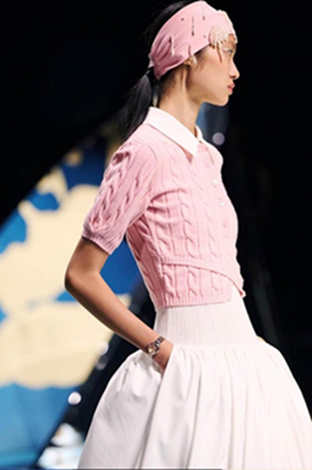 秀場(chǎng)上,模特們身著 RuirUiruI 的新季時(shí)裝,腕間疊戴天王表,不僅打破了傳統(tǒng)腕表的佩戴方式,更完美契合了「三相月」主題所倡導(dǎo)的對(duì)時(shí)間哲思的探索。腕表不再僅僅是記錄時(shí)間的工具,更是時(shí)尚搭配的點(diǎn)睛之筆,讓女性氣質(zhì)處于自由的狀態(tài)中,靈活且有態(tài)度地表達(dá)個(gè)性和品味宣言。