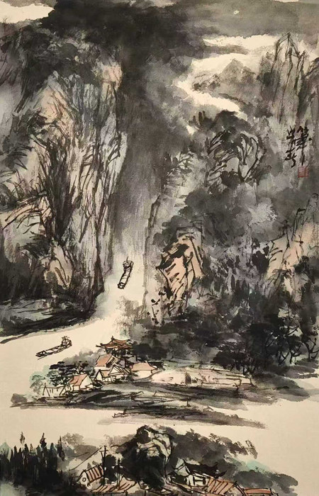 為精進筆墨技法,他常常閉門數(shù)日,反復(fù)錘煉“披麻皴”的溫潤與“斧劈皴”的剛勁,在干濕濃淡的墨色變化中探尋山水的肌理與風(fēng)骨。這份近乎執(zhí)拗的刻苦,讓他的筆墨功底日漸扎實,筆下的山石既有挺拔如骨的蒼勁,又不乏溫潤如肉的靈韻。
