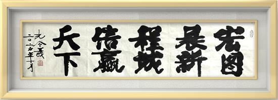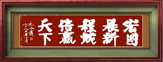 這種創(chuàng)新書體并非簡(jiǎn)單的形式變革,而是基于對(duì)書法史演變的深刻研究和洞察,正如中國(guó)歷史上每個(gè)鼎盛時(shí)代都會(huì)孕育新的書體,孔令義的新行楷體書法突出字體上的四角飽滿,正大方正,昂首挺立。筆劃上又采用隸書、楷體、行書筆劃優(yōu)長(zhǎng),走筆自如瀟灑,克服古法用筆的呆板,筆法雄健有力,以入木三分之功體現(xiàn)新時(shí)代氣質(zhì),是對(duì)當(dāng)代中國(guó)精神風(fēng)貌的藝術(shù)凝練。